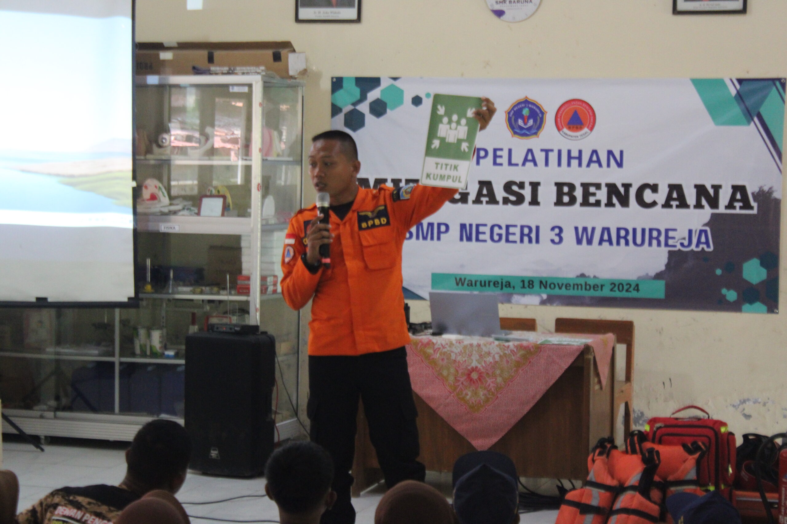 Warureja, 18 November 2024 – SMP Negeri 3 Warureja, bekerja sama dengan Badan Penanggulangan Bencana Daerah (BPBD) Kabupaten Tegal, sukses menyelenggarakan Pelatihan Mitigasi Bencana. Kegiatan yang digelar di lingkungan sekolah ini bertujuan untuk meningkatkan kesadaran dan pengetahuan siswa serta guru tentang penanganan bencana alam.